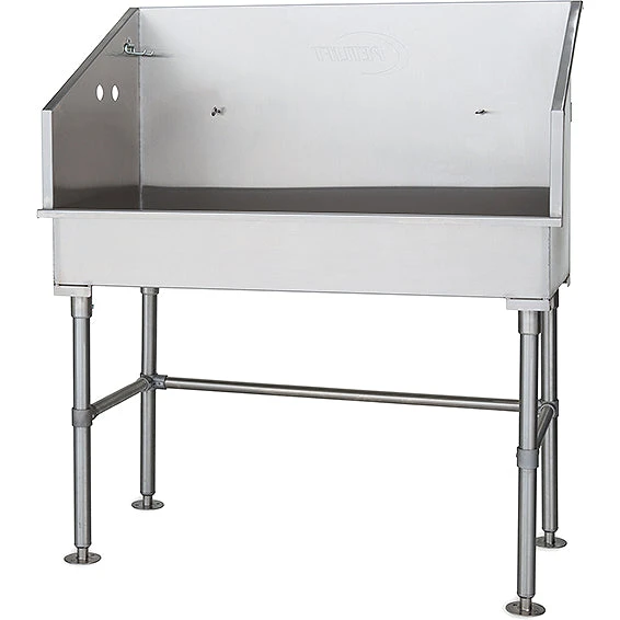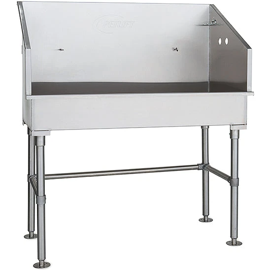The Rascal Bath is the newest stainless steel tub in the PetLift and has all the same great features as our popular Mini Monster Tub, but it also adds 40% more space with its 48″ width. It conveniently accommodates animals up to 60 lbs. and will handle small to medium-sized dogs easily and efficiently, raising the animal to a higher height than our standard baths.