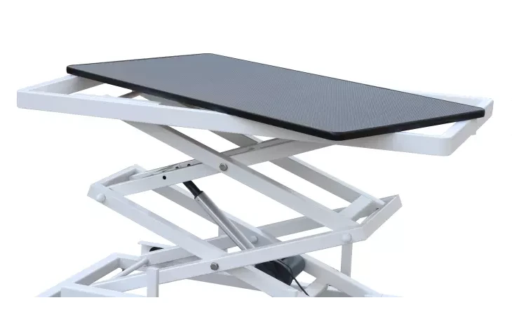 This table harnesses its lifting power from a LINAK linear actuator. Linak is known for its durability, longevity of life and smooth lifting power. They are the same company that most hospital beds get their lifting power from. This creates an electric, hydraulic lift that will not jostle or scare the animal that you are grooming.