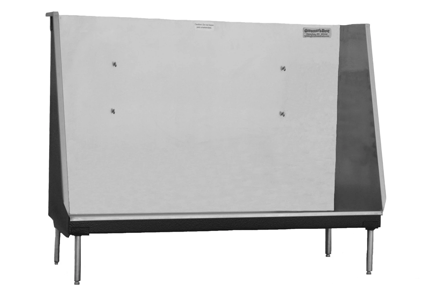 The tub features a high wall on the back and a very short edge for pups to climb over. This design allows owners to spray down one side and then the other before heading home.