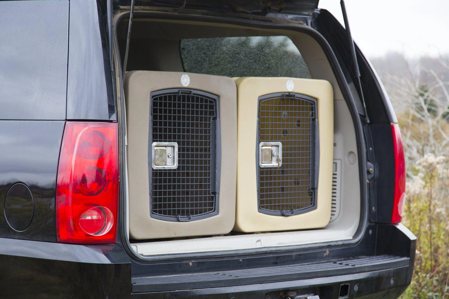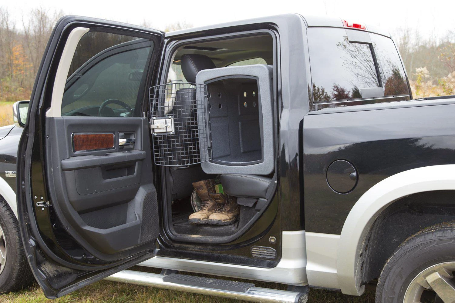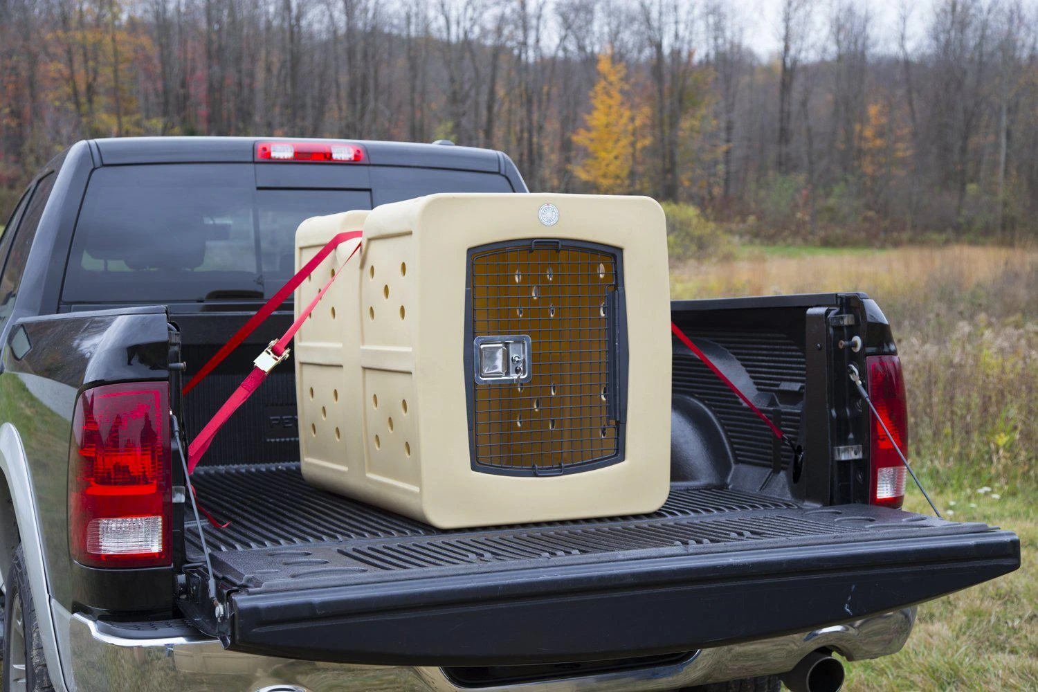 The deep, wide interiors are enough to hold nearly any size dog (or other similar sized animals). The G3 kennels are dimensioned to maximize the rear interior of most trucks, SUVs and hatchbacks (that are 48 inches wide or more) sitting side-by-side. If your pet has an “accident,” the plastic is easily rinsed and the small, rear-facing holes allow for easy drainage. There’s plenty of air circulation with 16 holes in the Medium size and 20 holes for the large and up. Thanks to the double-hinged door, access is never a problem. The door can swing from right or left and can be completely removed with ease from the outside.