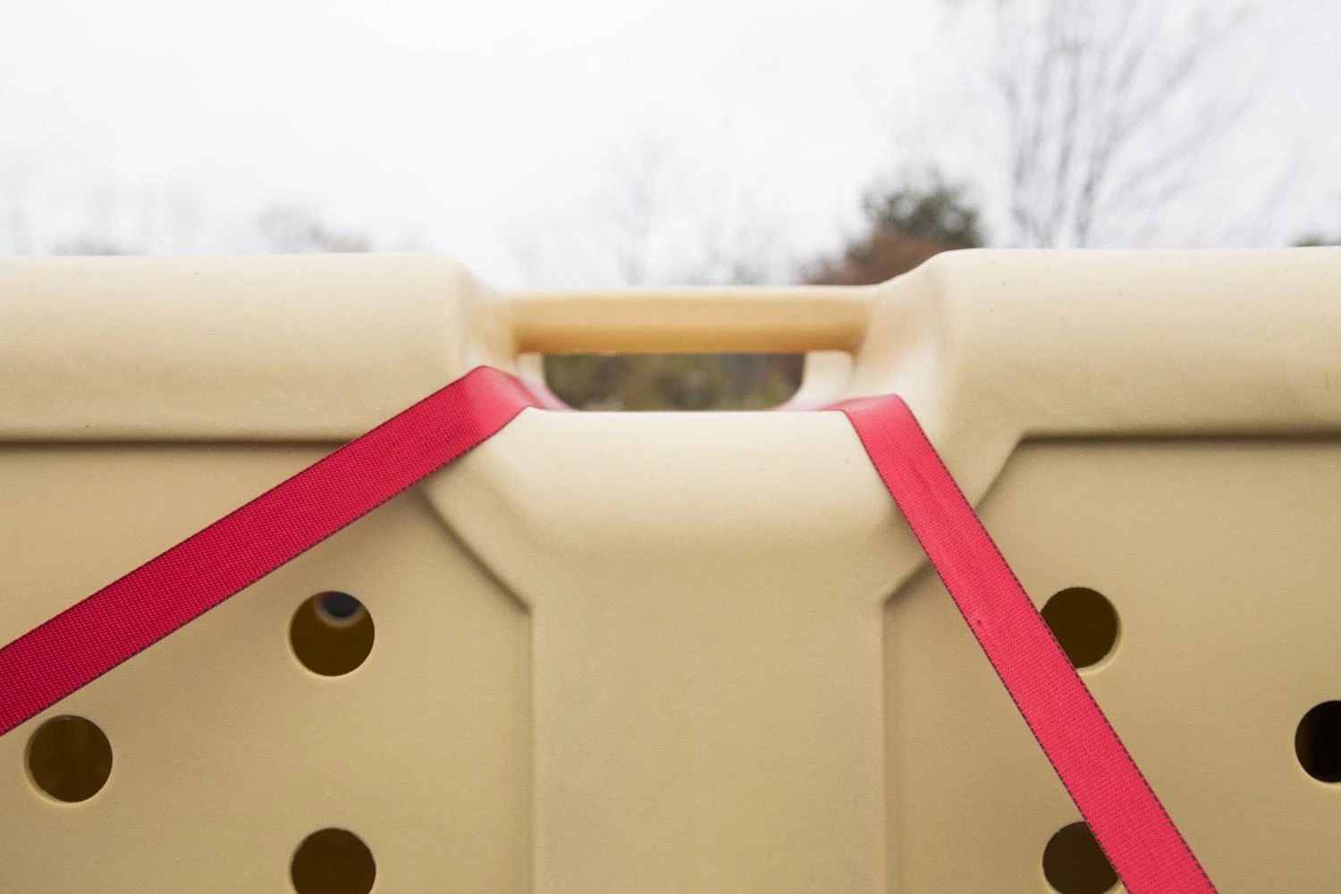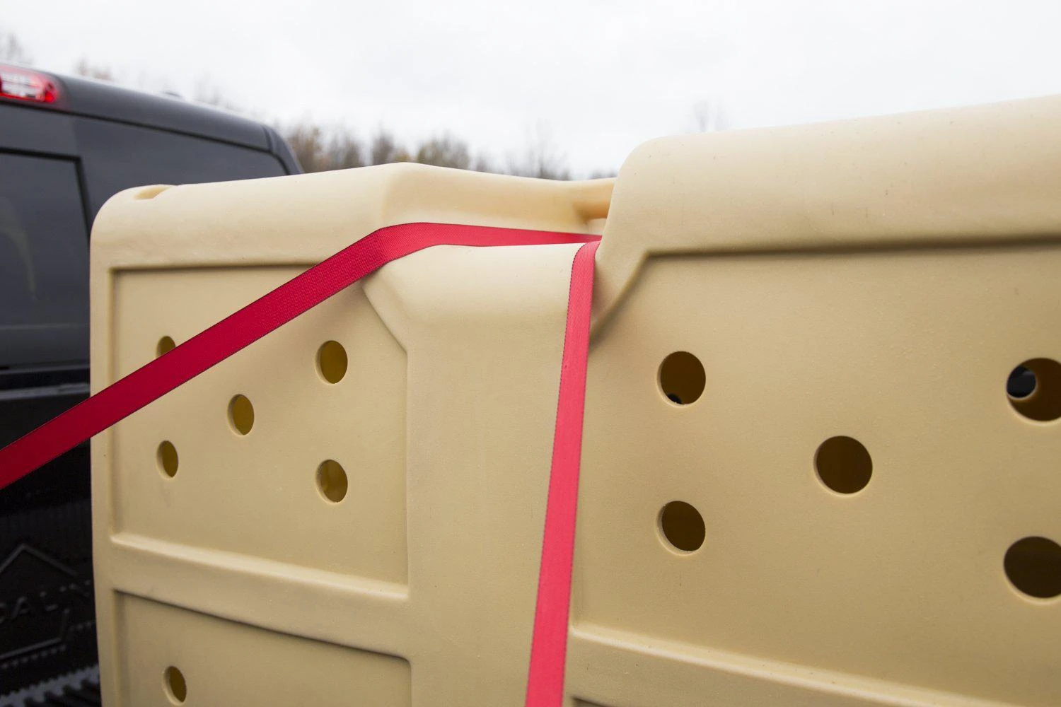 The G3 Medium glides more easily across surfaces. This is ideal if you don’t require the crate to be raised and prefer the sliding action. By running straps through the top handle hole, the G3s can be locked in for a permanant stay in the back of virtually any vehicle.