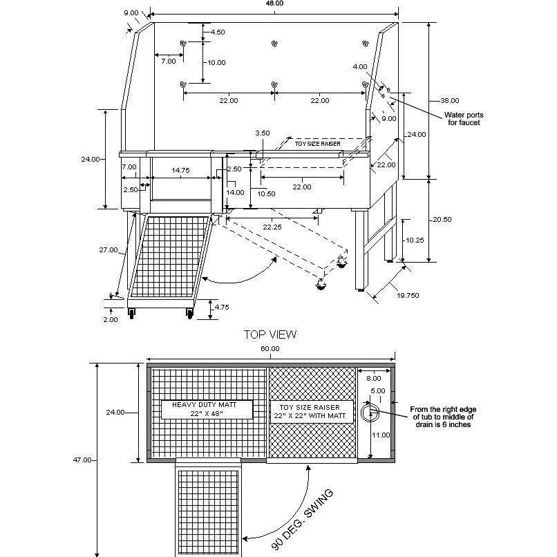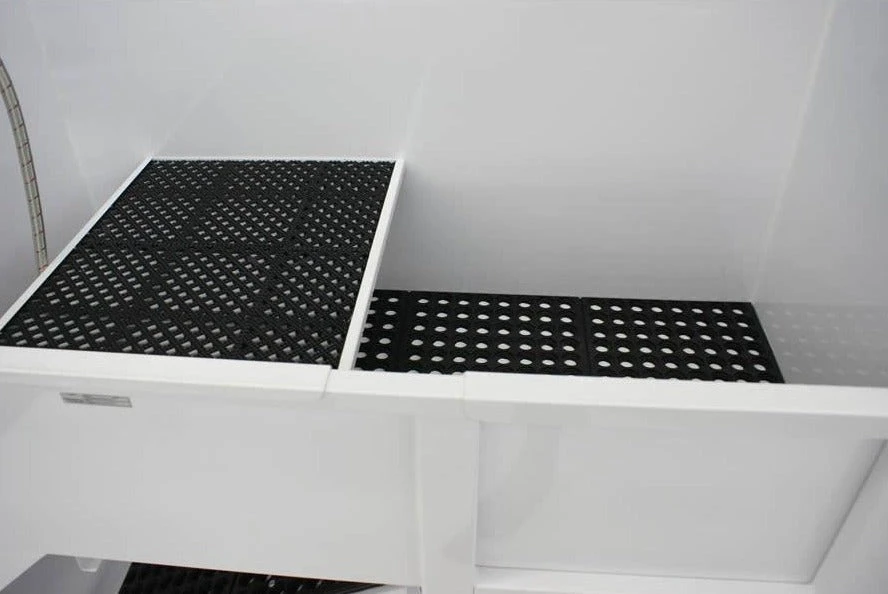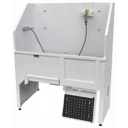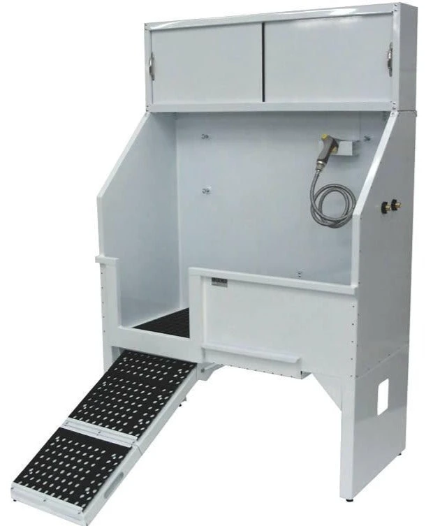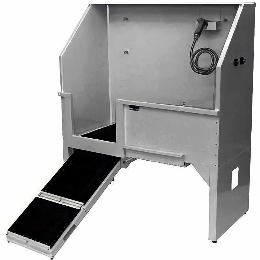 The Edemco ED-F665000PCL Elite Tub gives you the finest quality electrostatically powder coated, 16 gauge, galvanized steel at the most affordable price. The F665000PC bathing system built by Edemco is made with large breeds in mind. The access door lifts to open while the loading ramp easily pushes under tub for storage. No other bathing system offers the same quality and affordability.