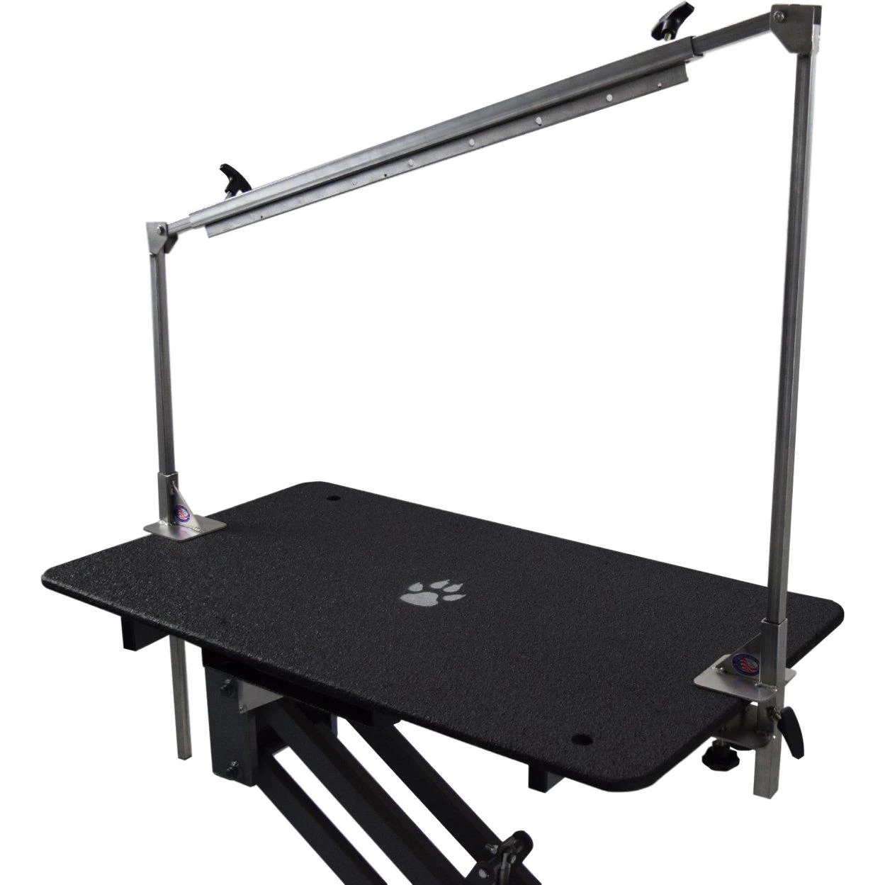 - 2 Grooming arms with Overhead arm with multiple locations to clip on nooses.