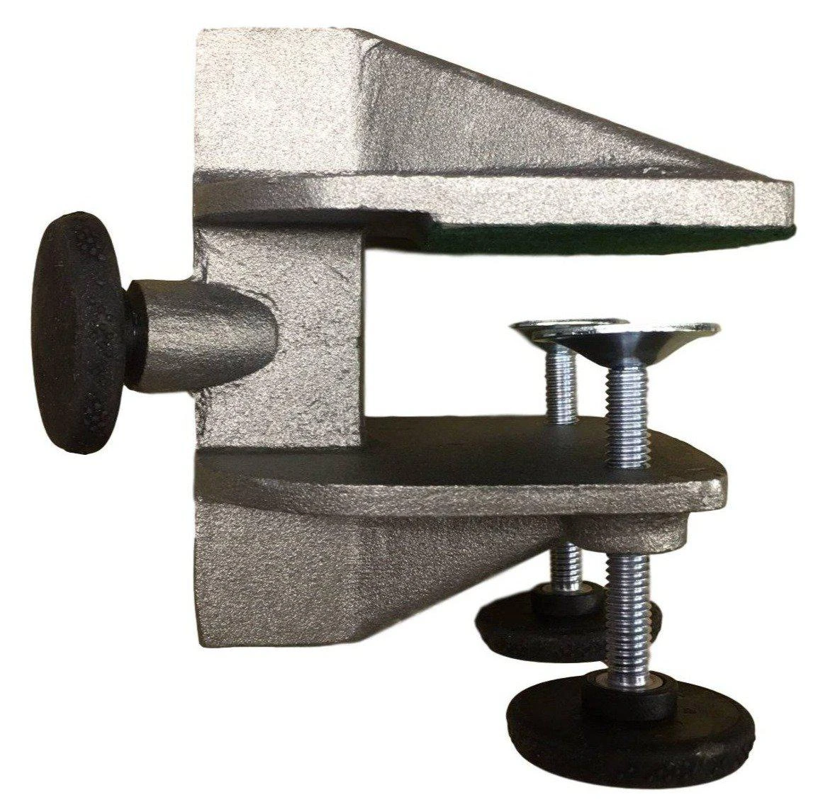 - Two large diameter Stainless steel clamp knobs with large diameter pads to prevent table top damage.