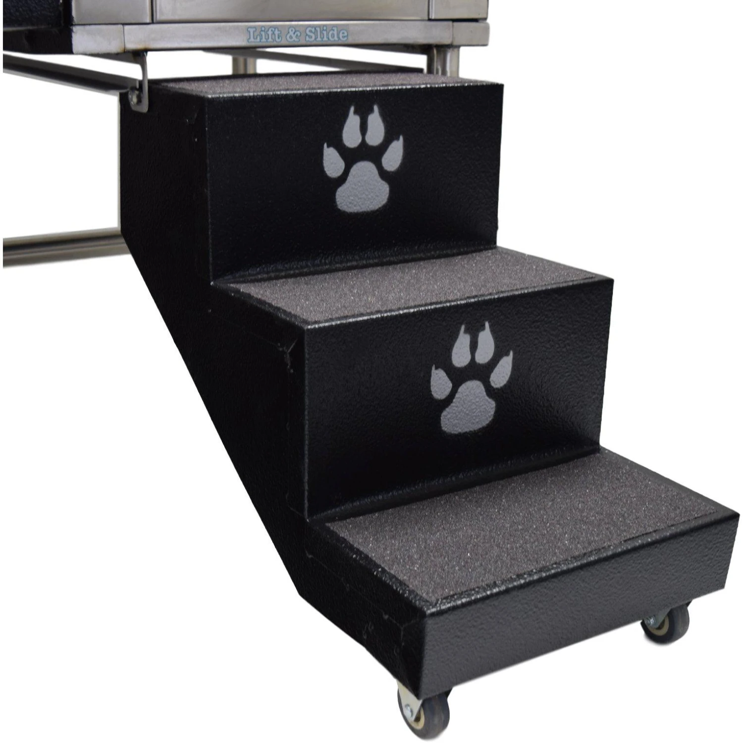 - Steps slide straight back out of your way and lock in position when pulled all the way out.