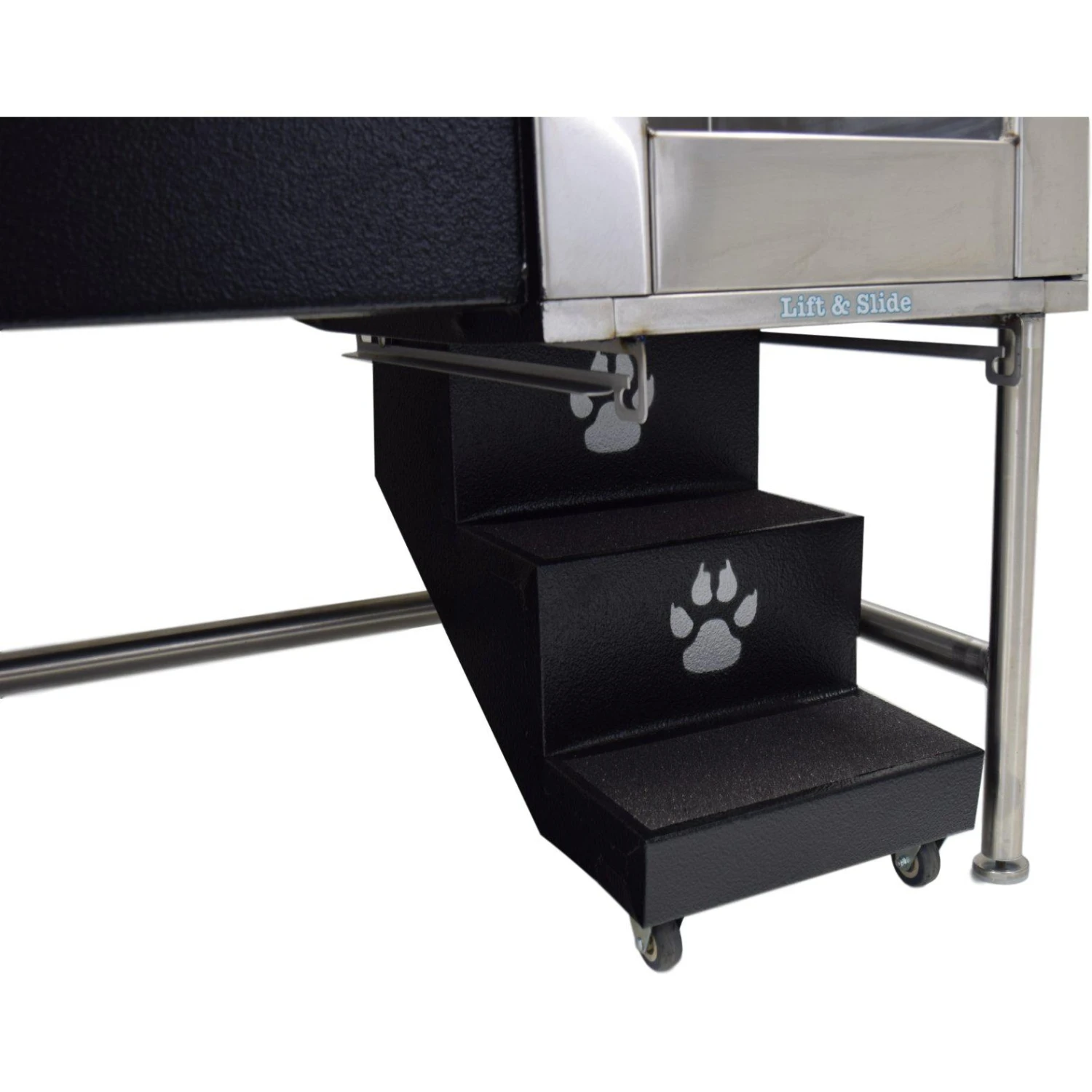 - Includes removable raised tray for small dogs and two animal restraint hooks