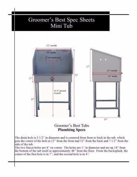 The Mini Bath Tub is great for bathing the small to medium pets. It is constructed of 18 gauge 304 type polished stainless steel and has fully welded seams. The Mini bathing tub is raised up for easier bathing of small dogs and cats. Ships fully assembled and has tubular legs, improved animal restraints and is also coated on the outside with a Speed Liner textured sealant that is leak proof and sound dampening. This heavy duty protective spray coating protects your tub and can be applied in any of our five select colors!