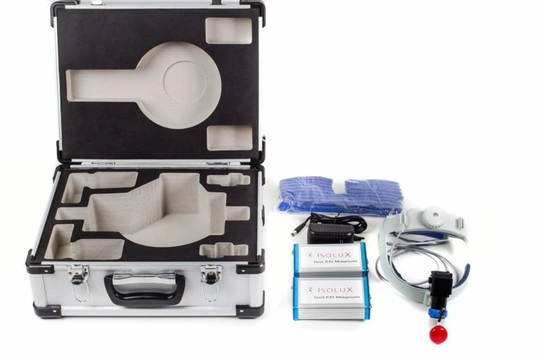 What makes the IsoLux Magnum LED Battery Powered Surgical Headlight the best surgical headlamp system is the ability to adapt to the needs of Neuro, Plastic, Orthopedic, and Thoracic Surgeons. Magnum has been meticulously designed to offer reduced weight, optimal brightness, and color. In addition, the blue aperture control on the LED headgear allows for spot size adjustment during medical procedures.