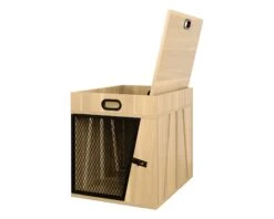 Lucky Kennels Penny Pet Crate: Modern Haven Meets Stylish Side Table (Dog Crate, Cat Crate, Pet House) Upgrade your pet’s space and elevate your home décor with the Lucky Kennels Penny Pet Crate. This innovative design seamlessly blends functionality with modern style, creating a cozy haven for your furry friend that doubles as a stunning side table. Imagine Your pet relaxing in a geometric sanctuary bathed in natural light thanks to the cleverly designed panels. This crate eliminates the cold, caged feeling with warm wooden panels, making it an attractive addition to any living room, bedroom, or entryway.