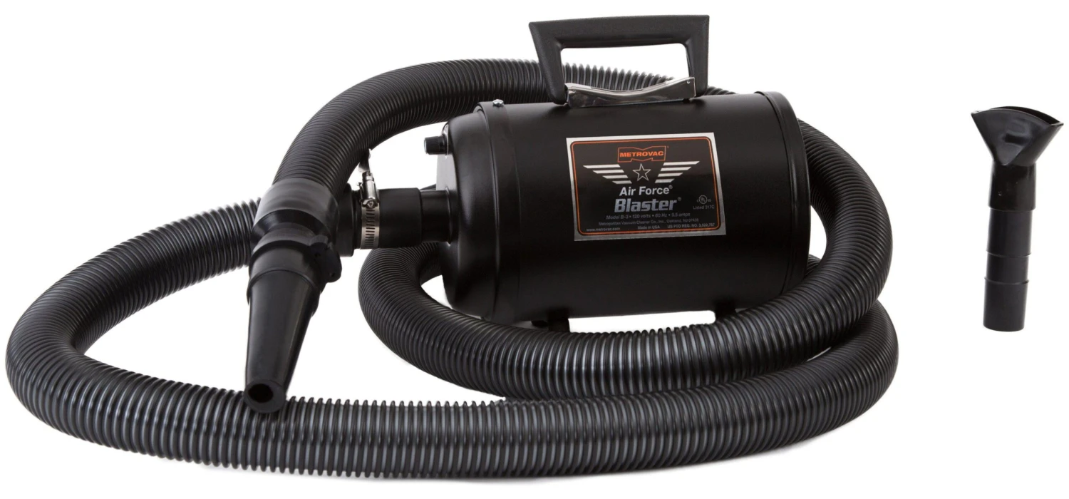 The Air Force Blaster Pet Dryer by MetroVac is lightweight and features an advanced design that reduces drying time by 75% – so you and/or your grooming business can move along to other tasks in no time.