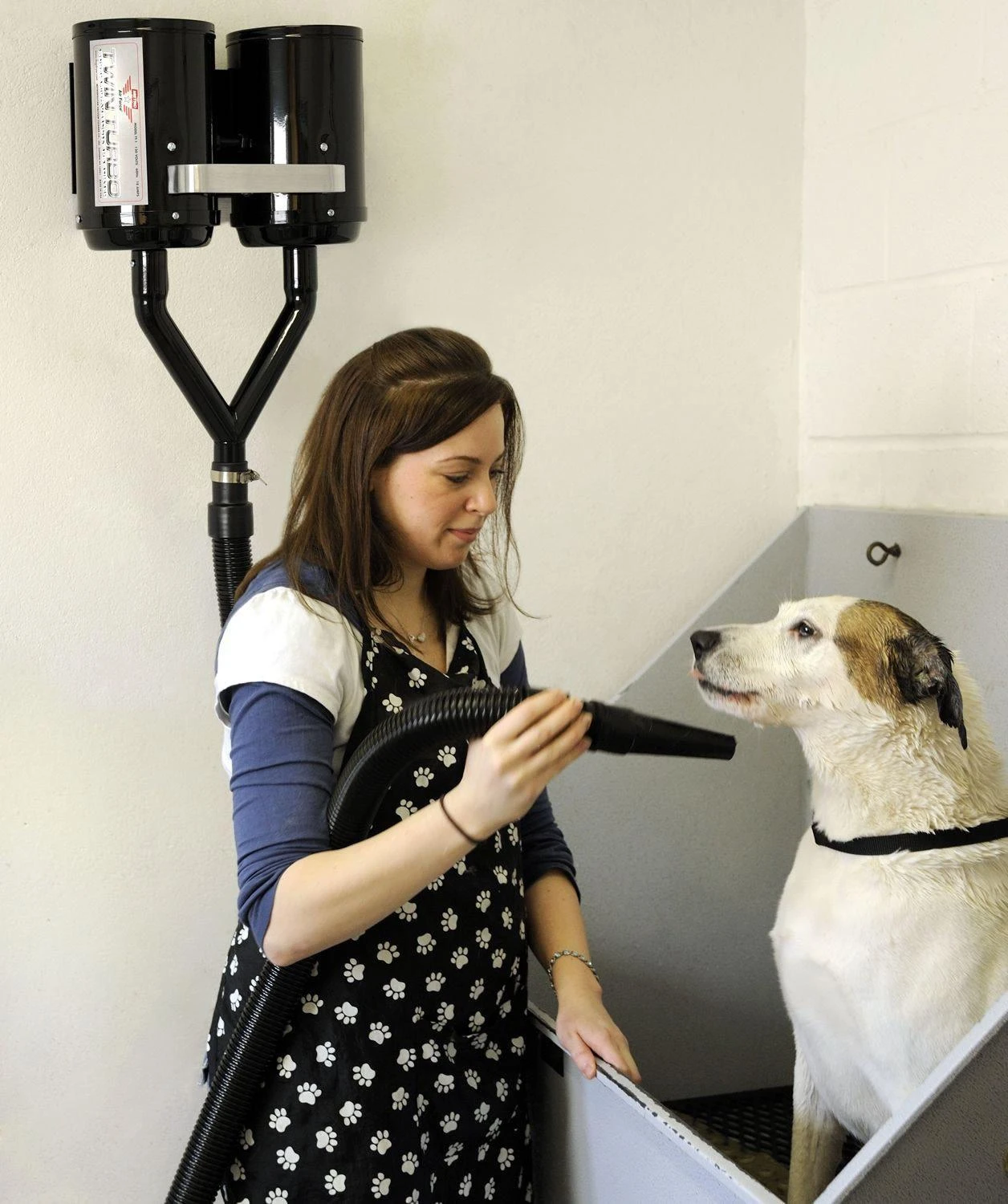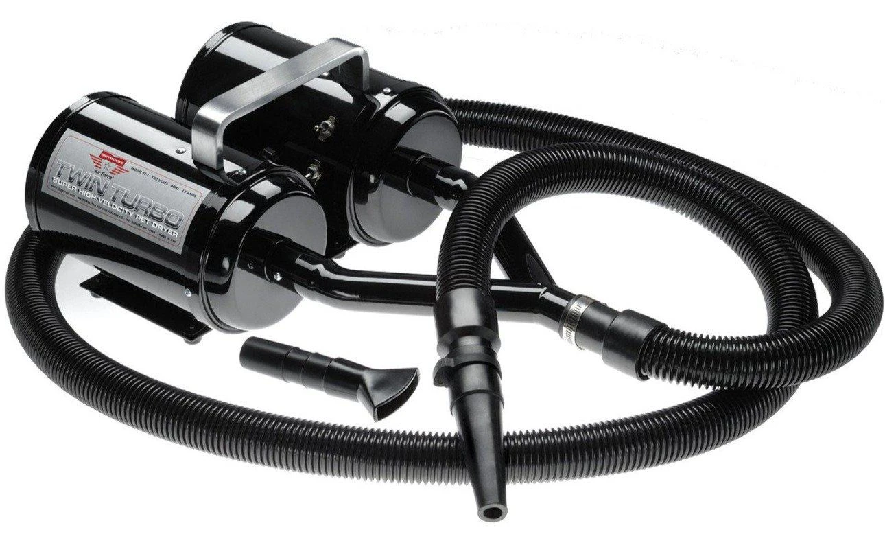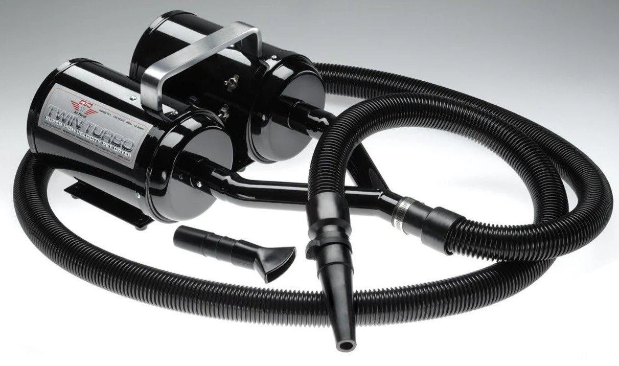 Cut drying time with this powerful Model TT-2X4 Air Force Twin Turbo Super High Velocity Pet Dryer.