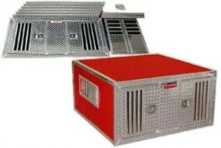 DIY Series Double Compartment Dog Box Kit. With this do-it-yourself kit, you provide the wood and wood screws to complete the Owens DIY Dog Box. The kit contains a welded, rigid door frame with lockable stainless steel flush mount slam latch doors (with storm covers) slotted for cooling fans, heavy-gauge aluminum corners, two adjustable side vents, instructions, and a complete bolt pack. You add wood and wood screws.