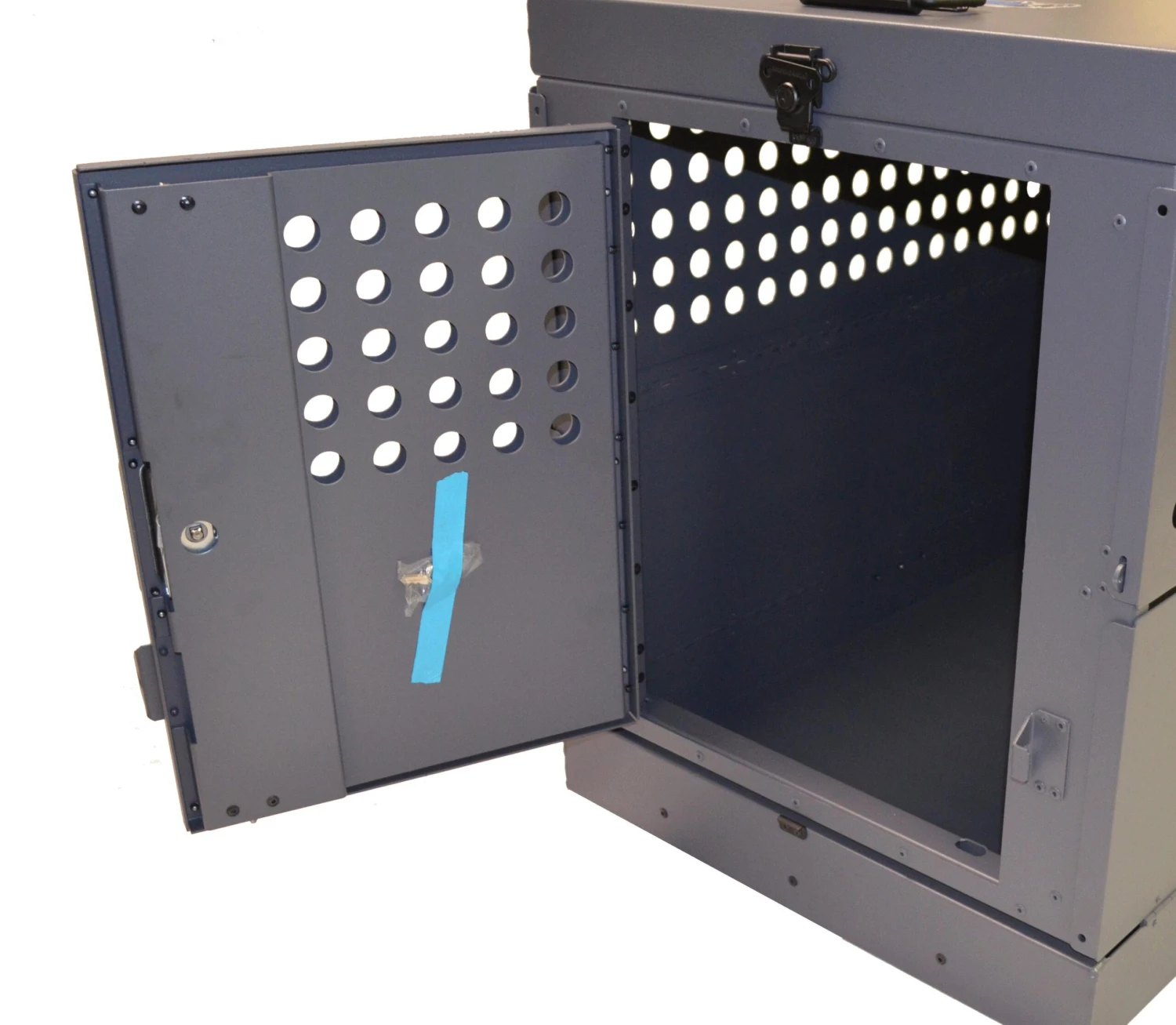 - Locking mechanism covered on the inside to deter K9 from biting at it and trying to open the door (“Houdini-Proof”).