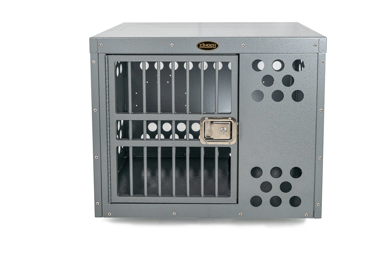 - Modular Design: All ZINGER crates can be coupled side by side or stacked atop one another to form multiple dog crate systems or kennel banks.