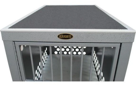 The rubberized “pebble textured” mat makes an excellent “Non Slip” grooming top surface which will offer years of service. It can also be used as a great non-slip liner for the inside of your crate when purchased separately. Its soft pliable rubber offers excellent ruggedness and durability for years of use. The attractive aluminum trim is riveted around the edge of the crate to finish off the crate top (as represented in the image below).